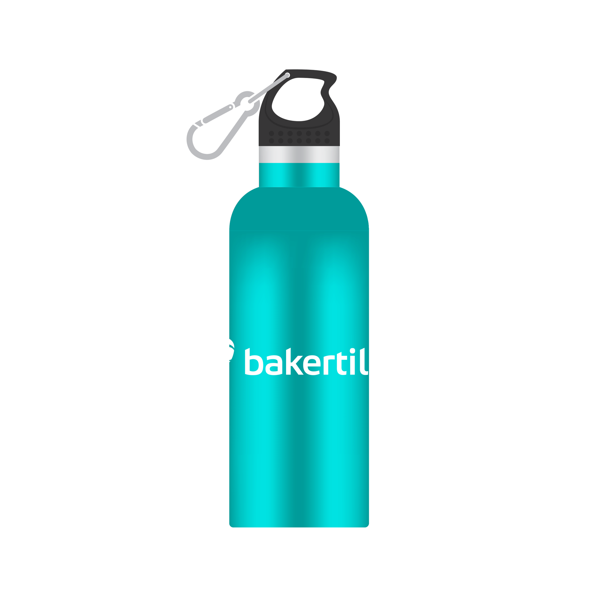 Insulated bottle perfect for keeping beverages hot or cold. Features a convenient carabiner clip attachment. Custom printed in aqua. 500ml capacity. Minimum order quantity of 100. Delivery times can take several months. Express delivery is available at an additional cost.